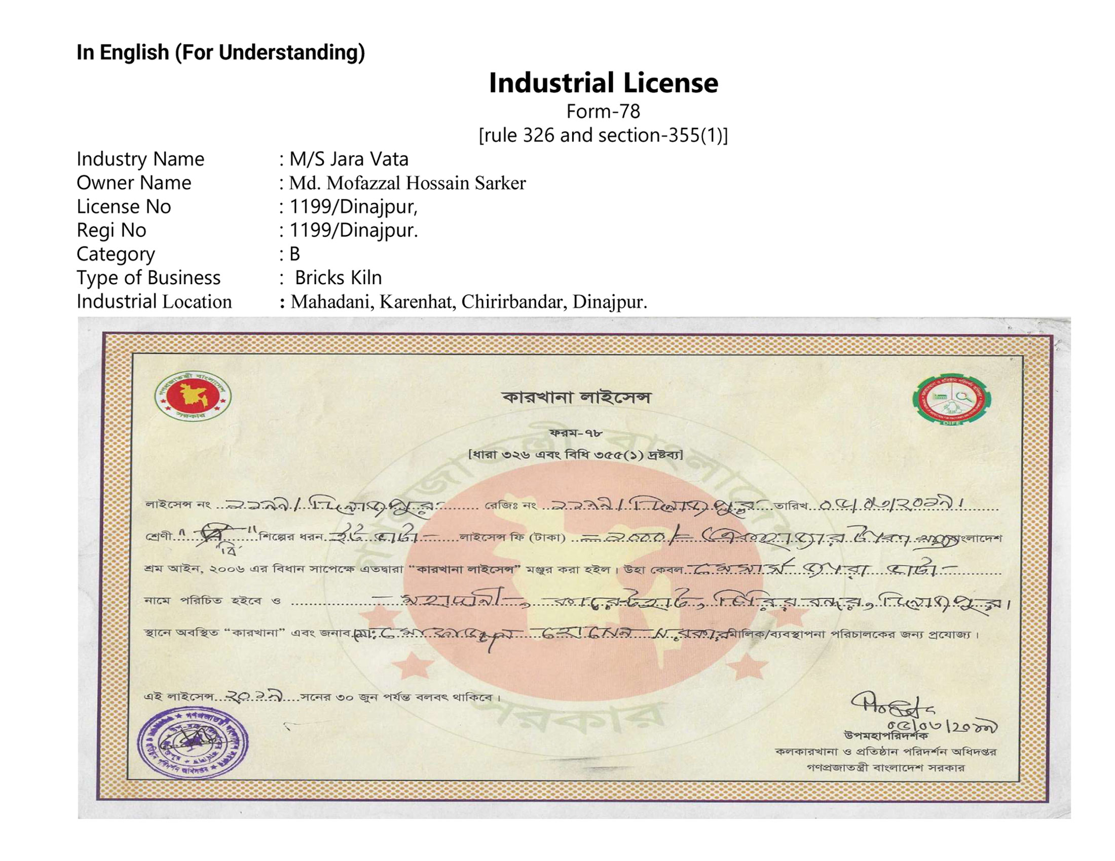 Industrial License_Ms Zara Vata