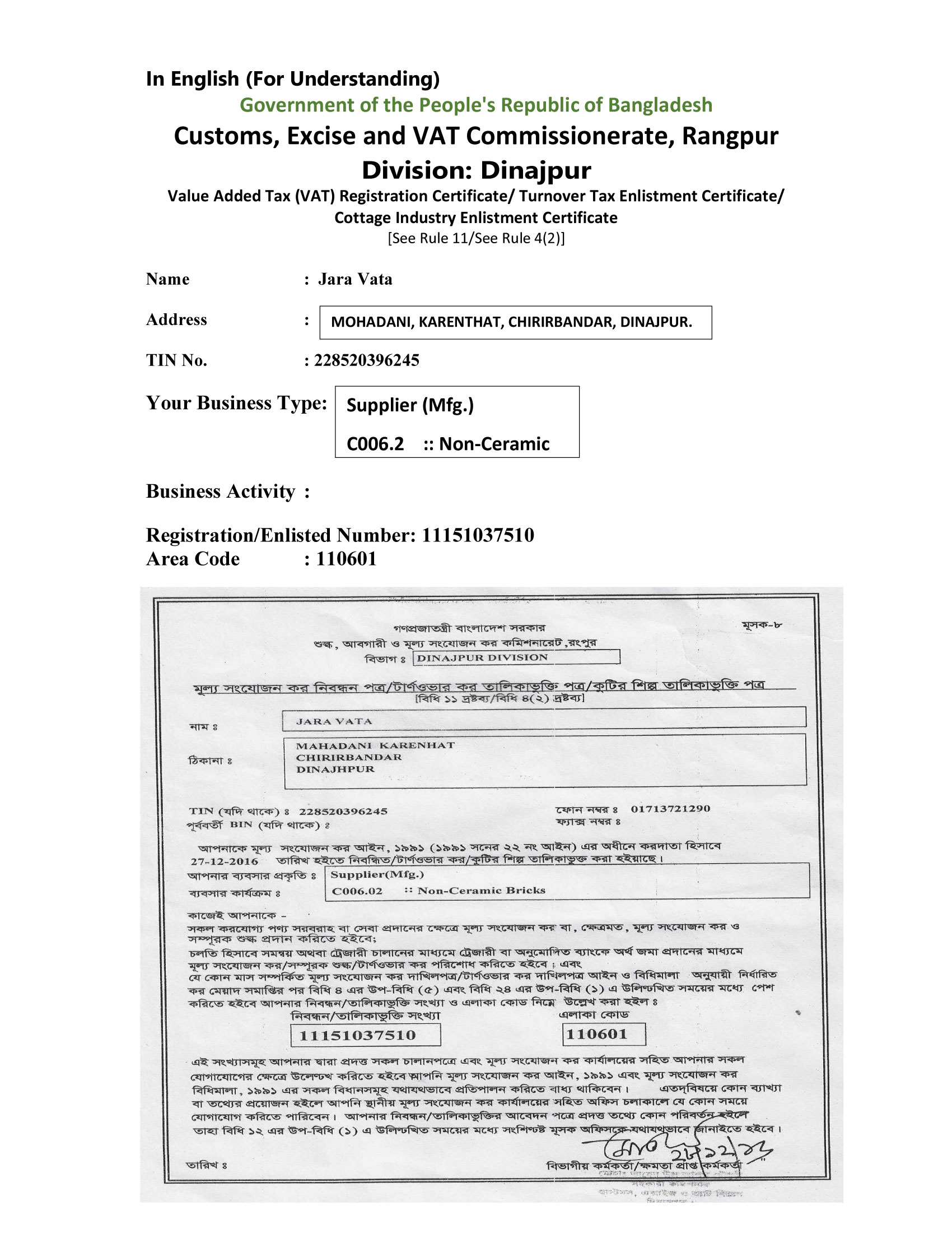 Tax (VAT) Registration Certificate_Zara Vata