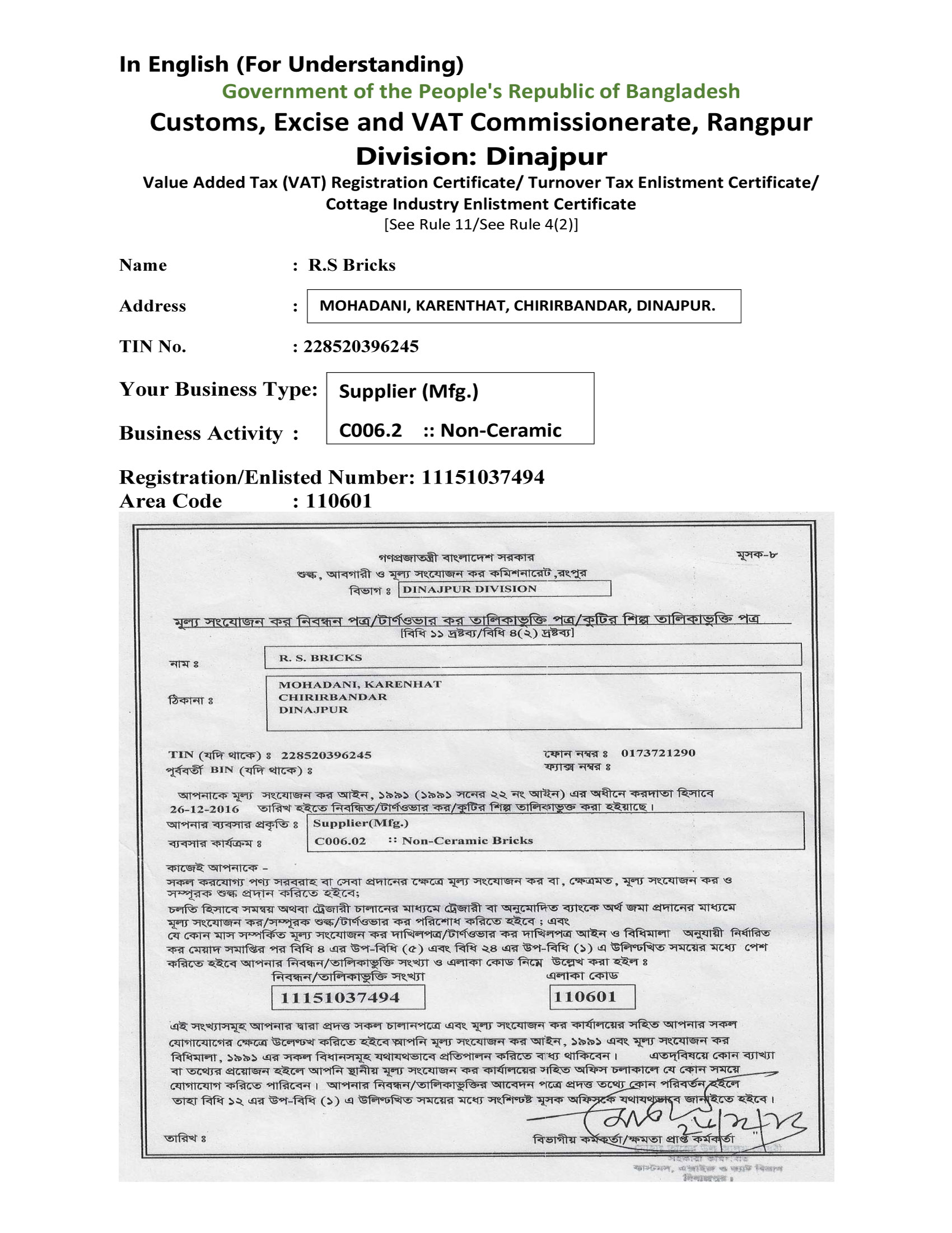 Tax (VAT) Registration Certificate_RS Bricks